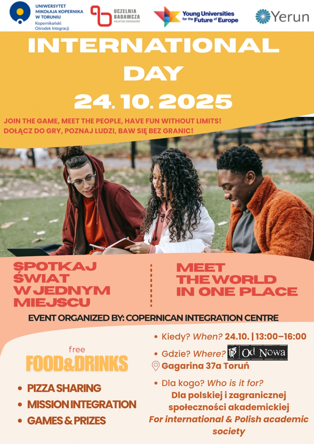 Join us for INTERNATIONAL DAY 2025, organized by the Copernican Integration Center (KOI)! It’s a perfect opportunity to meet people from all over the world, discover new cultures, and help build an open, multicultural academic community.