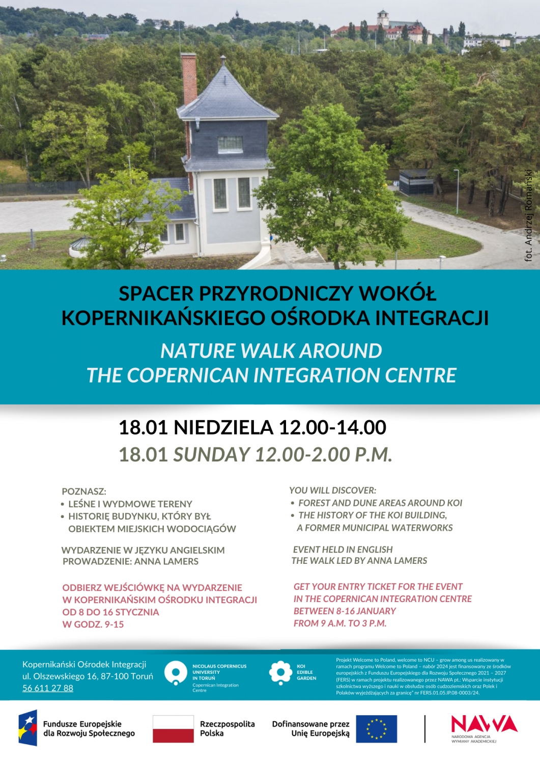 A Nature Walk Around the Copernican Integration Centre (KOI) for the local community of Toruń and the academic community - students, doctoral students and employees of the Nicolaus Copernicus University. Join!
