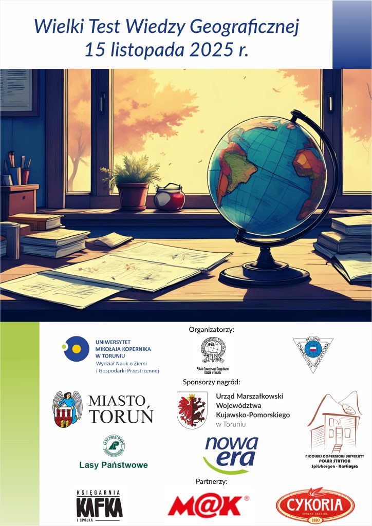 Uczniów szkół ponadpodstawowych, gotowych na geograficzne potyczki w nowej odsłonie oraz ich nauczycieli zapraszamy do Torunia w sobotę 15 listopada 2025 r.