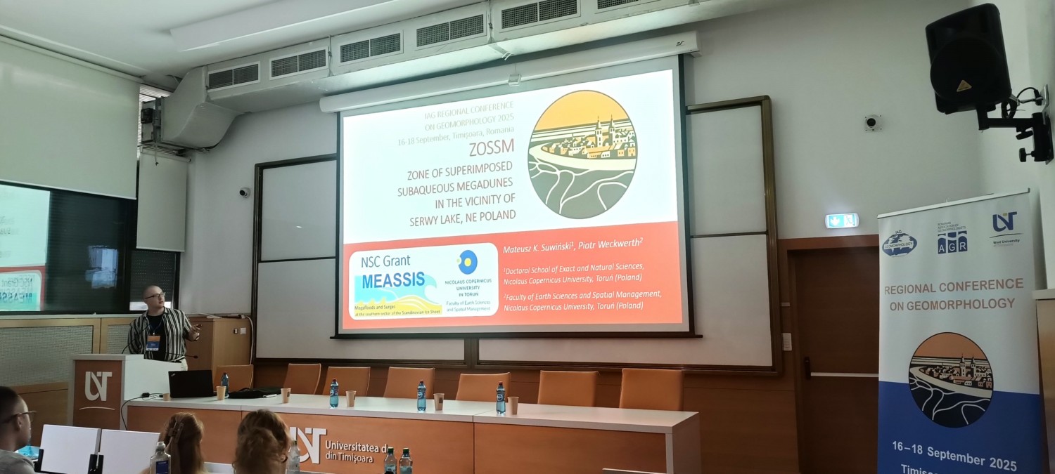 Prof. dr hab. Wojciech Wysota oraz doktoranci Katedry Geomorfologii i Paleogeografii, mgr Joanna Martewicz i mgr Mateusz Suwiński uczestniczyli w międzynarodowej konferencji IAG Regional Conference on Geomorphology "Geomorphology for society: challanges and opportunities" (Timișoara, 16-18 września 2025 r.), na których prelegenci przedstawili swoje referaty: