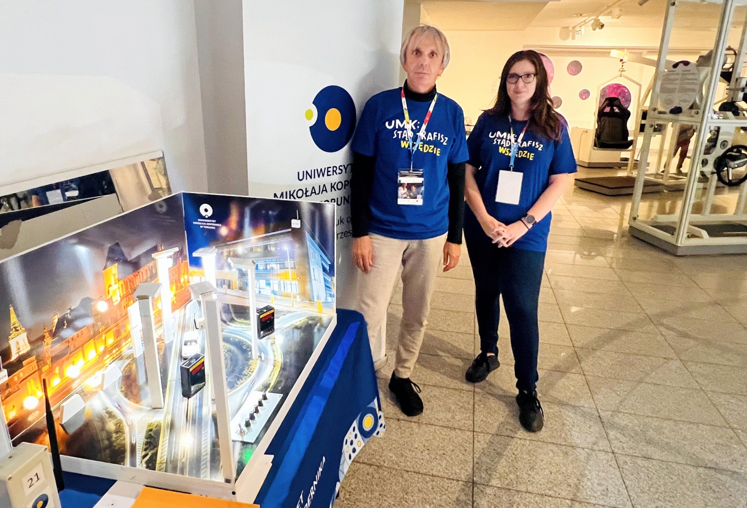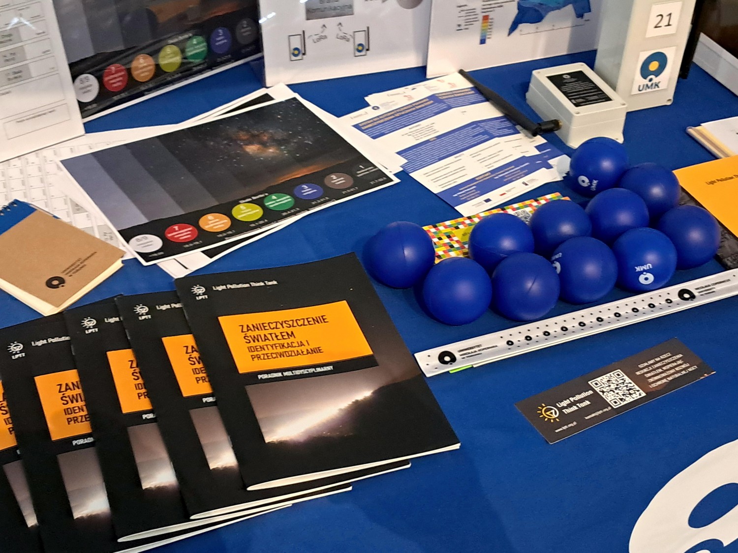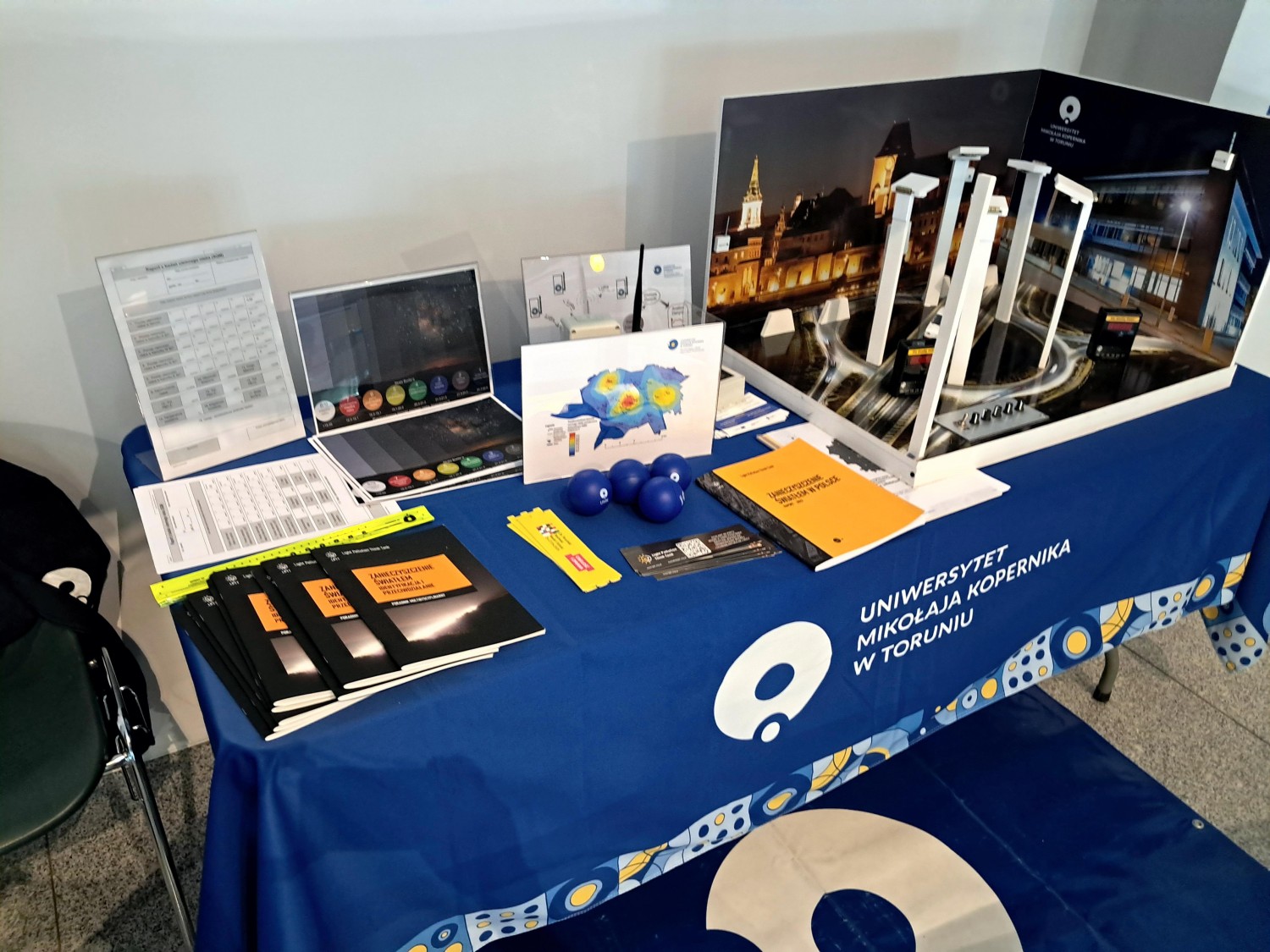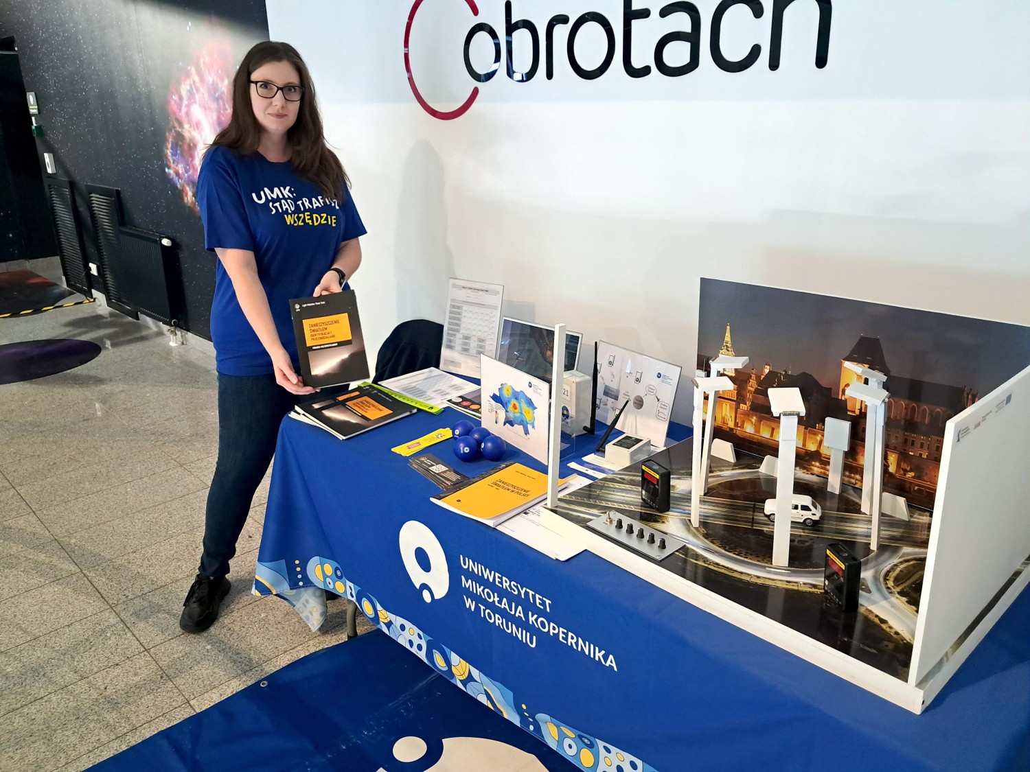 Tematem przewodnim tegorocznej Nocy Naukowców była ochrona środowiska i zmiany klimatu, w tym zanieczyszczenie i ochrona wód, gleb, powietrza oraz zanieczyszczenie światłem. Ten ostatni element był przedmiotem interaktywnej ekspozycji przygotowanej przez naukowców z Katedry Geoinformacji i Teledetekcji Środowiska naszego wydziału – dr inż. Dominikę Daab oraz dr. hab. Mieczysława Kunza, prof. UMK. Na stoisku zaprezentowano dioramę prezentująca problematykę zanieczyszczenia światłem nocnego nieba, zarówno przyczyny zjawiska, jak i stosowane metody pomiarowe, omówiono wyniki prowadzonych badań i realizowanego monitoringu smogu świetlnego w Toruniu, województwie kujawsko-pomorskim oraz w Polsce, a także bezpłatnie dystrybuowano Poradnik multidyscyplinarny – Zanieczyszczenie światłem - Identyfikacja i przeciwdziałanie opracowany przez Light Pollution Think Tank (https://lptt.org.pl/).