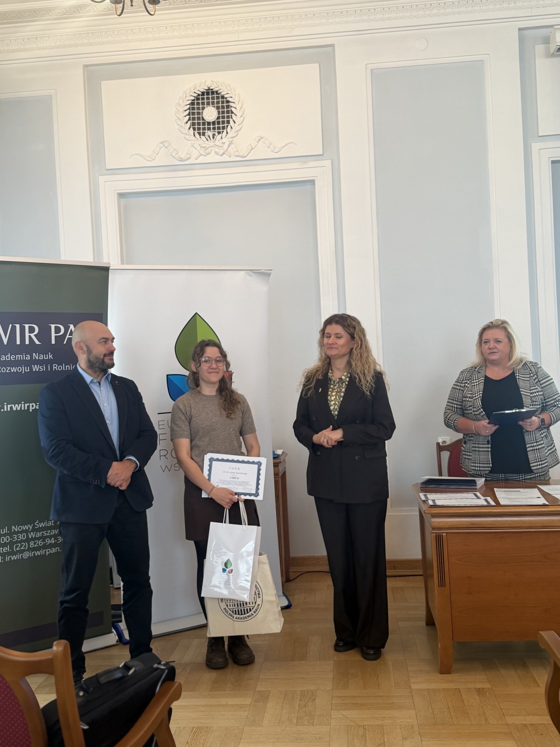 W organizowanym co dwa lata V Konkursie na najlepszą pracę magisterską dotyczącą rozwoju obszarów wiejskich z dziedziny nauk społecznych, 3. miejsce zdobyła nasza absolwentka - P. mgr Agata Lewandowska. Organizatorami Konkursu są: Instytut Rozwoju Wsi i Rolnictwa PAN (IRWIR PAN) oraz Fundacja Europejski Fundusz Rozwoju Wsi Polskiej (EFRWP) - fundator nagród.