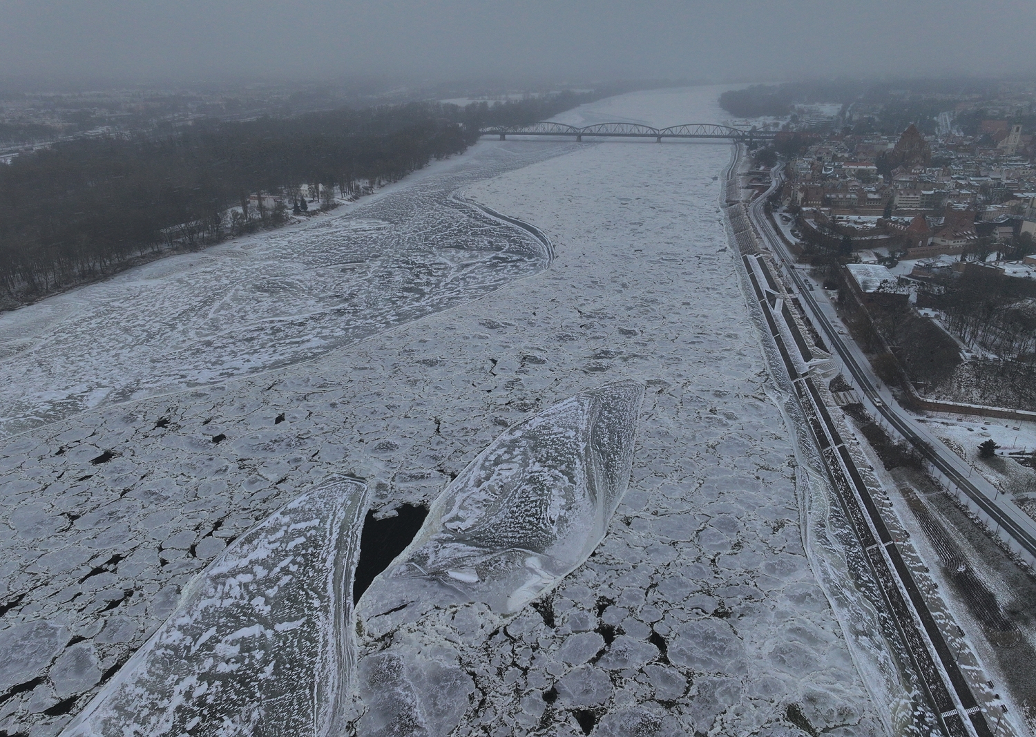 W tej chwili na naszym odcinku rzeki nie ma zagrożenia wezbraniem zatorowym które mogłoby osiągnąć poziom alarmowego stanu wody. Dziś została uruchomiona akcja łamania lodu w ujściu Wisły i o ile stan wody pozwoli, nie jest wykluczone, że za około 3 tygodnie lodołamacze zobaczymy również w Toruniu. Może oczywiście również zdarzyć się i tak, że do tego czasu pokrywa lodowa się rozpadnie i spłynie w dół w postaci kry. Wówczas taka akcja nie będzie już tu potrzebna.
