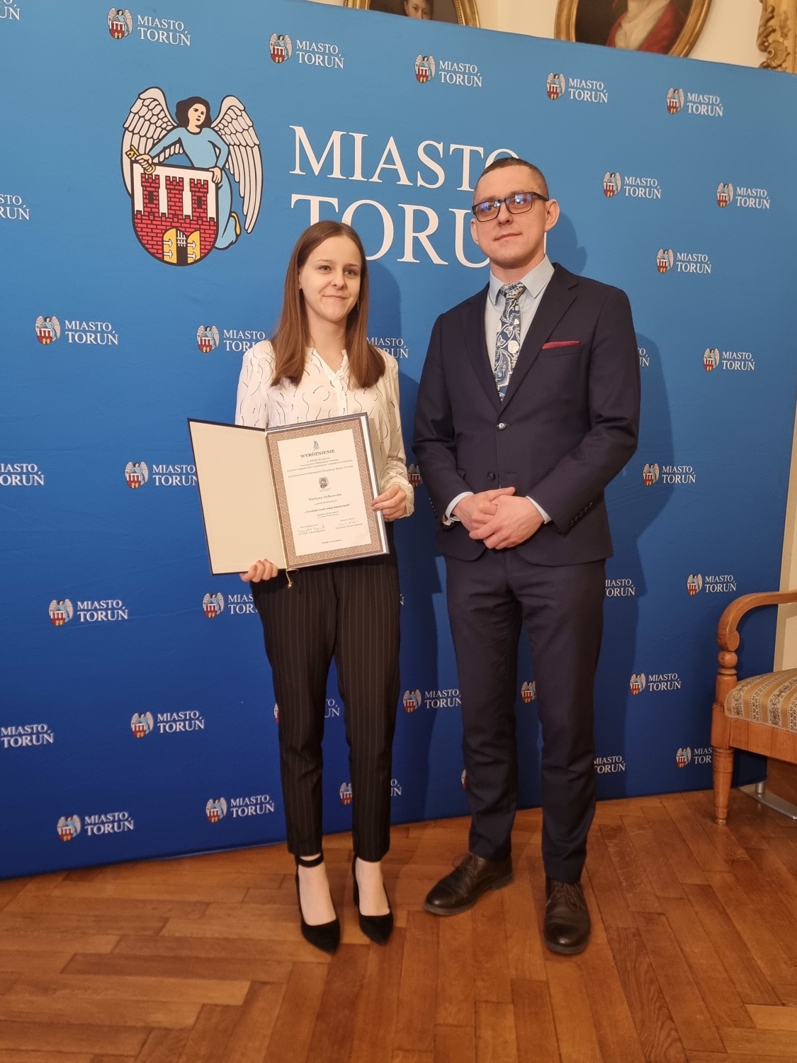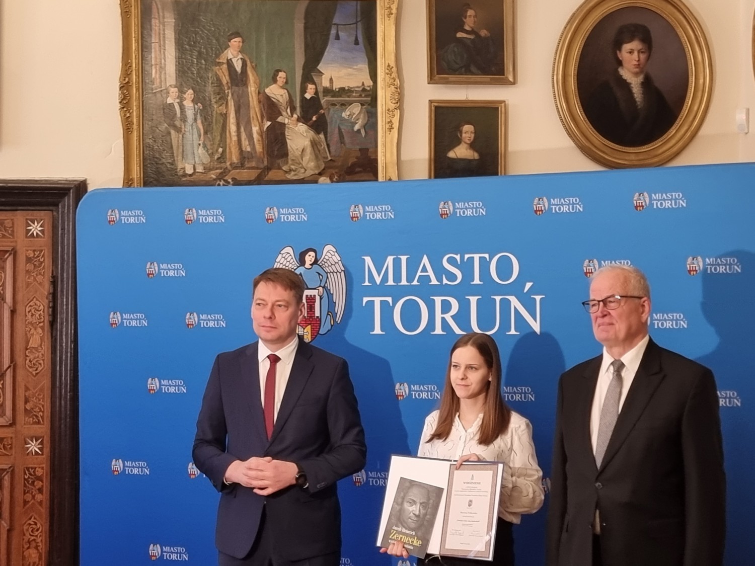 W dniu 10 kwietnia 2026 roku w Sali Rady toruńskiego Ratusza Staromiejskiego zostały uroczyście wręczone przez Zastępcę Prezydenta Miasta Torunia Adama Szponkę oraz Prezesa ToMiTo prof. dr. hab. Krzysztofa Mikulskiego nagrody w XXXIV Konkursie Towarzystwa Miłośników Torunia na najlepsze prace dyplomowe poświęcone Toruniowi. Wśród 10 laureatów tegorocznego konkursu znaleźli się nasi absolwenci: